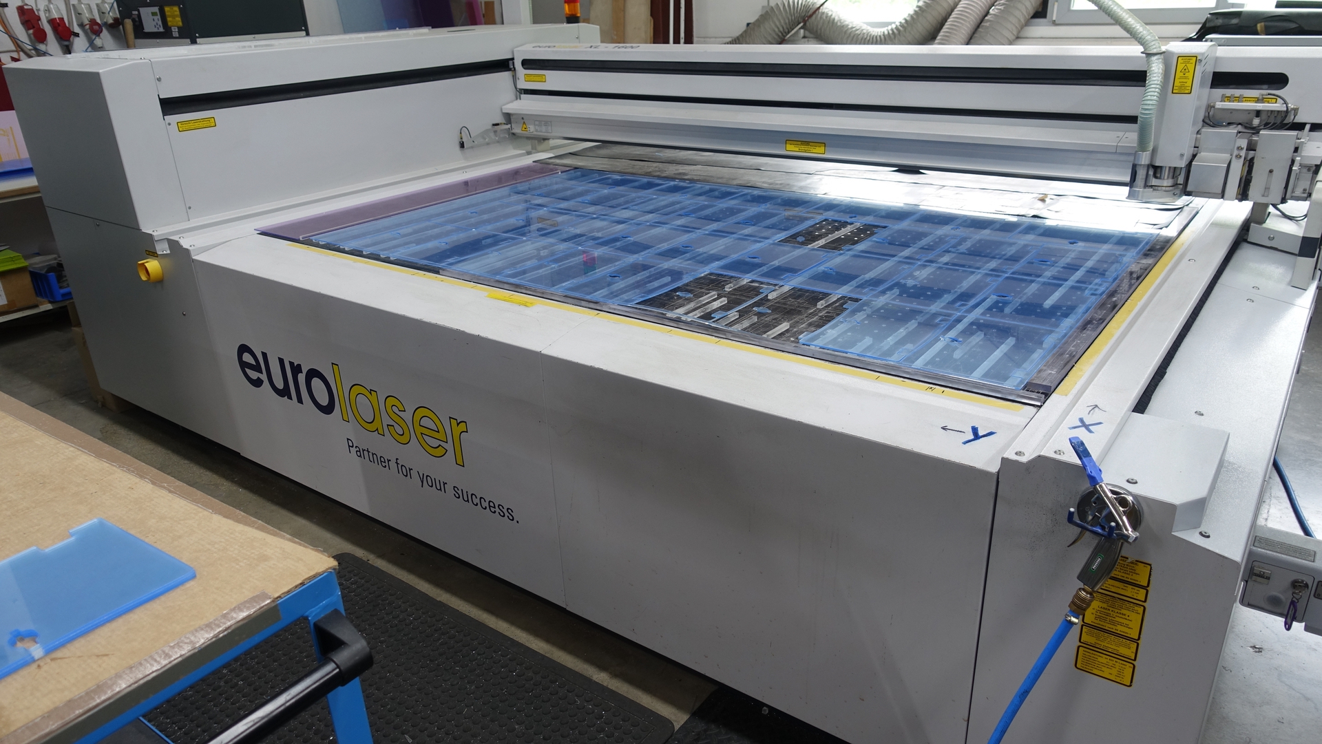 - Laserschneidanlage mit 400 W Leistung für filigrane Gravurarbeiten bis hin zur Bearbeitung hoher Materialstärken von über 30 mm